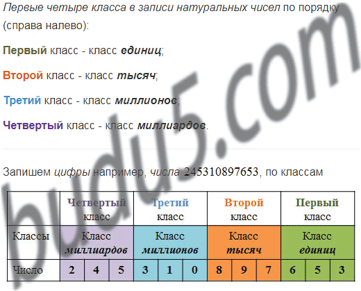 Назовите по порядку первые четыре класса в записи натуральных чисел.