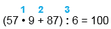 (57 • 9 + 87) : 6 = 100