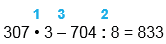 | 307 • 3 - 704 : 8 = 833 | ||||||||||||||