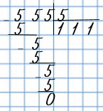 555 : 5 = 500 : 5 + 50 : 5 + 5 : 5 =