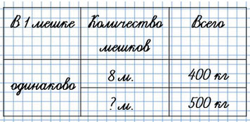 6. Масса 8 мешков картофеля 400 кг. Сколько таких мешков потребуется, чтобы засыпать в них 500 кг картофеля?