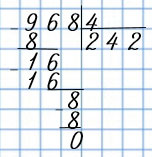Вычитаю: 8 - 8 = 0. Остатка нет. Сотни разделили все.