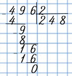 Вычитаю: 16 - 16 = 0. Остатка нет. Единицы разделили все.