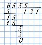 Вычту: 5 - 5 = 0. Единицы разделили все.