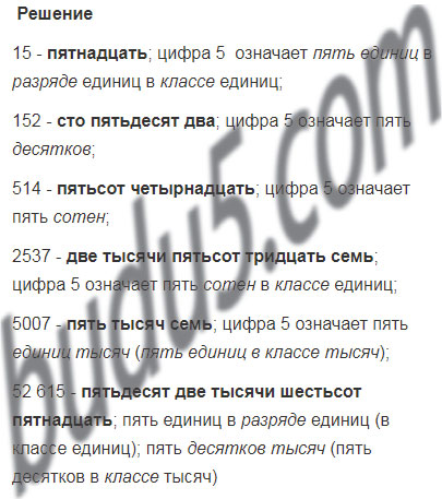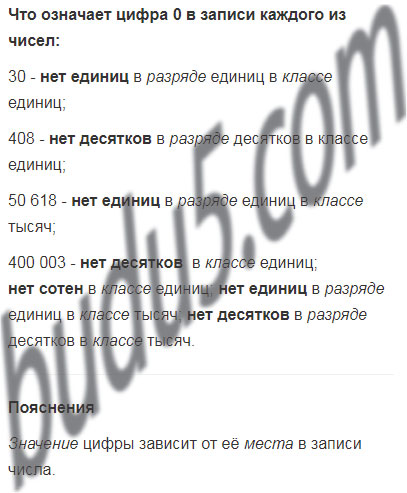 Прочитайте числа: 15; 152; 514; 2537; 5007; 52 615. Что означает цифра 5 в записи каждого из этих чисел? Что означает цифра 0 в записи каждого из чисел: 30; 408; 50 618; 400 003?