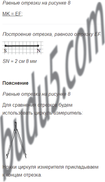 С помощью циркуля найдите равные отрезки на рисунке 8. Постройте в тетради отрезок, равный отрезку EF.
