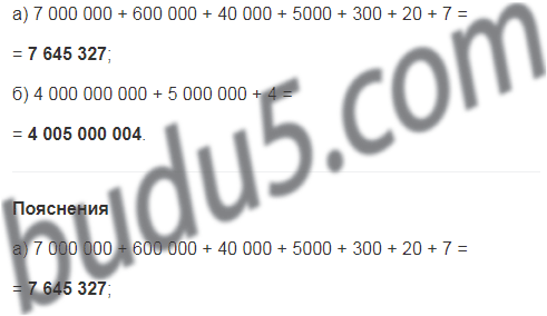 а) 7 000 000 + 600 000 + 40 000 + 5000 + 300 + 20 + 7;