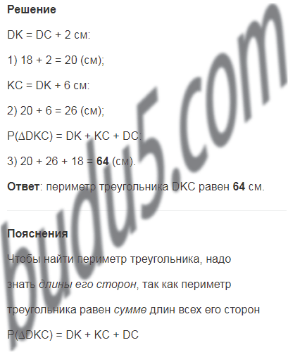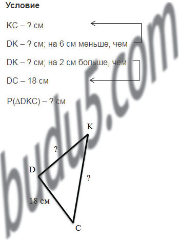 В треугольнике DKC сторона DK меньше стороны КС на 6 см и больше стороны DC на 2 см. Найдите периметр треугольника DKC, если DC = 18 см.