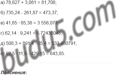 а) 78,627 + 3,081; г) 62,14 : 9,241;