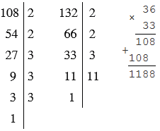 НОК(108; 132) = 2 • 2 • 3 • 3 • 3 • 11 =