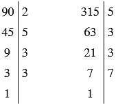 НОК(90; 315) = 2 • 3 • 3 • 5 • 7 =