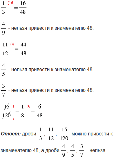 Дробь можно привести к данному знаменателю, если данный знаменатель можно разделить на знаменатель данной дроби, причем, если исходную дробь можно сократить, то дробь сначала сокращаем, а затем пробуем разделить нужный нам знаменатель на знаменатель сокращенной дроби. Если же нужный нам знаменатель не делится на знаменатель дроби, то дробь к этому знаменателю привести нельзя.